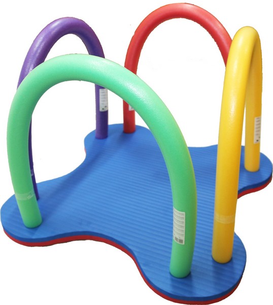 Плотик представляет собой конструкцию в виде фигурного основания, с отверстиями, в которые вставляются гибкие палки-нудлы (продаются отдельно), образующие своеобразные поручни-бортики, за которые держится ребенок, когда стоит в центре плота, а также служащие для баланса конструкции.