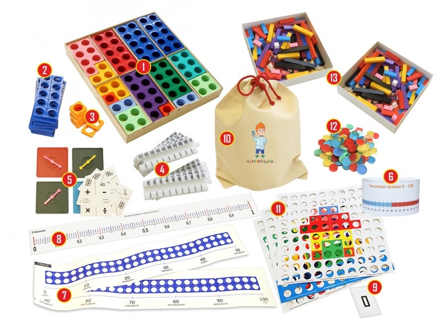 Набор дополнительных рабочих материалов для детей 9-11 лет Нумирошка – хороший выбор для детского сада или оздоровительного центра, где занятия проводятся в группе детей. Данная система поможет детям обучиться базовым математическим навыкам, а также развить усидчивость, мышление, тактильность.