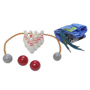 Комплектность изделия: ограничитель - 1 шт., кегли - 10 шт., шарик - 2 шт., мешочек для хранения - 1 шт.