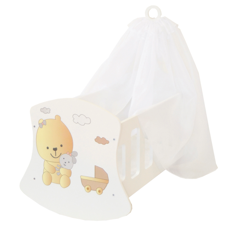 Особенность: Люлька с балдахином серии Мимими Мини, Крошка Би - с полноцветным печатным рисунком на бортике и комплектом белья понравится любой девочке. Люлька подходи для кукол до 30 см. В комплекте идет однотонное постельное белье: подушка, матрас, одеяло. Люлька подходит для сюжетно-ролевой игры в дочки-матери. Такие игры позволяют ребенку проявить свою фантазию, аккуратность, познакомиться с понятиями ответственности и заботы, развить мелкую моторику рук и почувствовать себя в роли заботливой мамы. Поставляется в разобранном виде, прилагается инструкция по сборке.