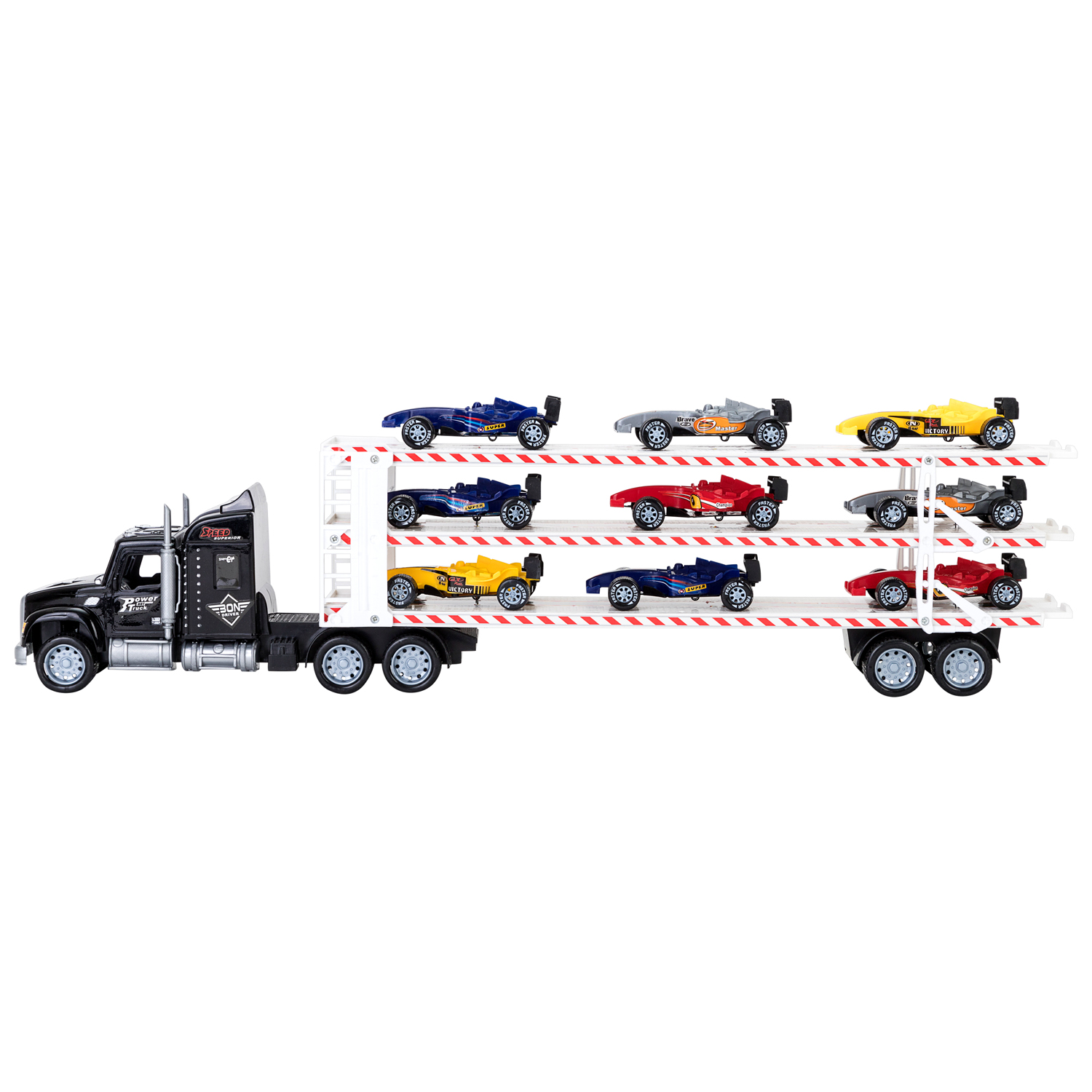 • В комплекте: автовоз, 8 разноцветных болидов.
