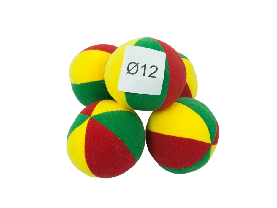 Комплектация: 6 деталей сшитых между собой (3цвета - красный, желтый, зеленый). Наполнен мячик синтепухом.