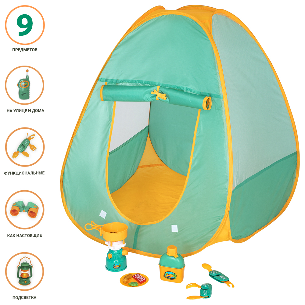 • Комплектация: палатка, примус, складной ножик, сковорода, тарелка, фляжка с кружкой.